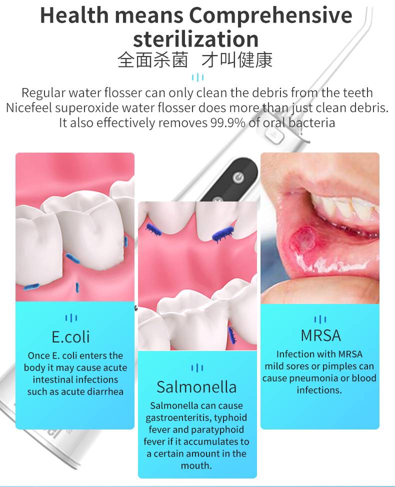 The use of ozone water irrigator can prevent the growth of oral bacteria and whiten teeth.